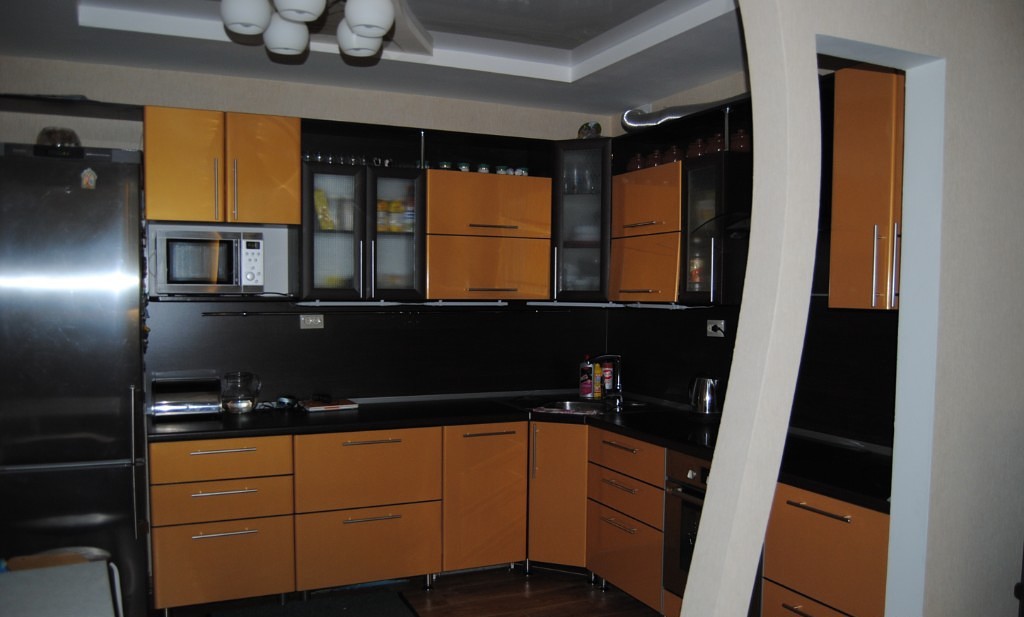 Оранжевый с черным — это сочетание оттенков поможет сделать кухню эксклюзивной и элегантной, оно придаст помещению изысканности и шарма.