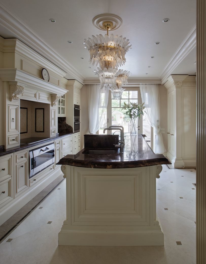 Кухня кремового цвета просторной загородной дачи и миниатюрной квартиры одинаково выглядит шикарно. Пространство в изобилии наполнено воздухом, светом, десертным привкусом. Чтобы стильно оформить интерьер, нужно смело создавать контрасты в виде сочетания матовых с глянцевыми поверхностями, идеально гладкие с выпуклыми фактурами, спокойные с динамичными цветами.