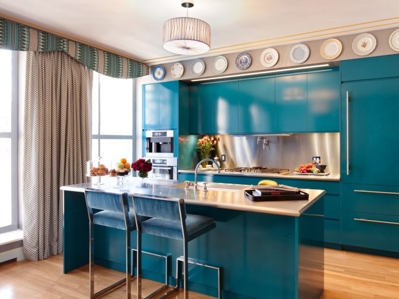 Кухня, оформленная в бирюзовых тонах, без сомнения, правильное решение. Этот цвет можно подстроить под любое помещение, создать с помощью него успокаивающую или, наоборот, динамичную обстановку. Придать кухонной комнате неповторимость, своеобразие, оригинальность.