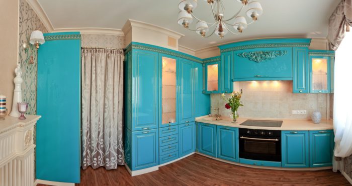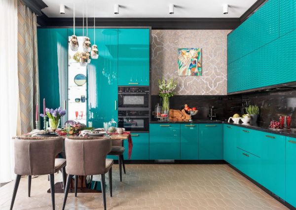 Кухня бирюза характеризует хозяев квартиры, позволяет им выразить свое отношение к миру и эмоциональный настрой.