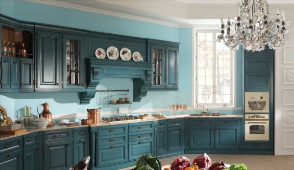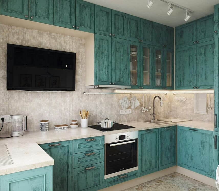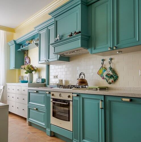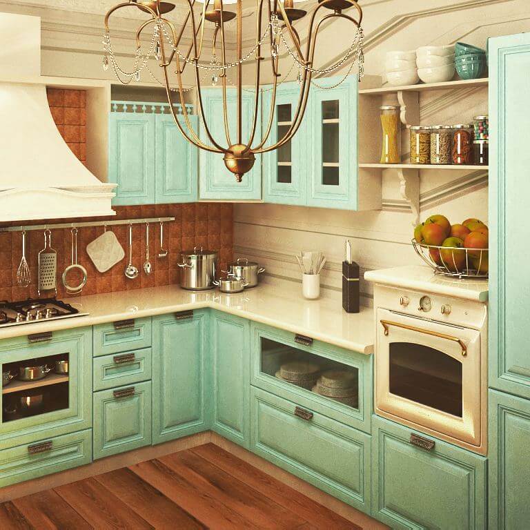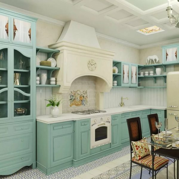 Красивая кухня бирюзового цвета в стиле «прованс»