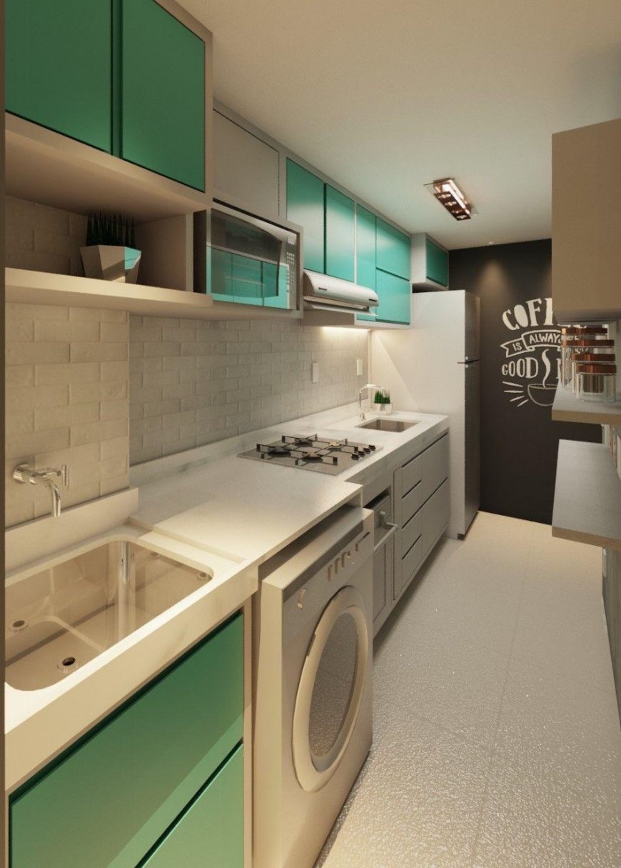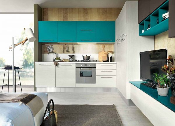 Бирюзовые оттенки идеально вписываются в лаконичный интерьер кухни