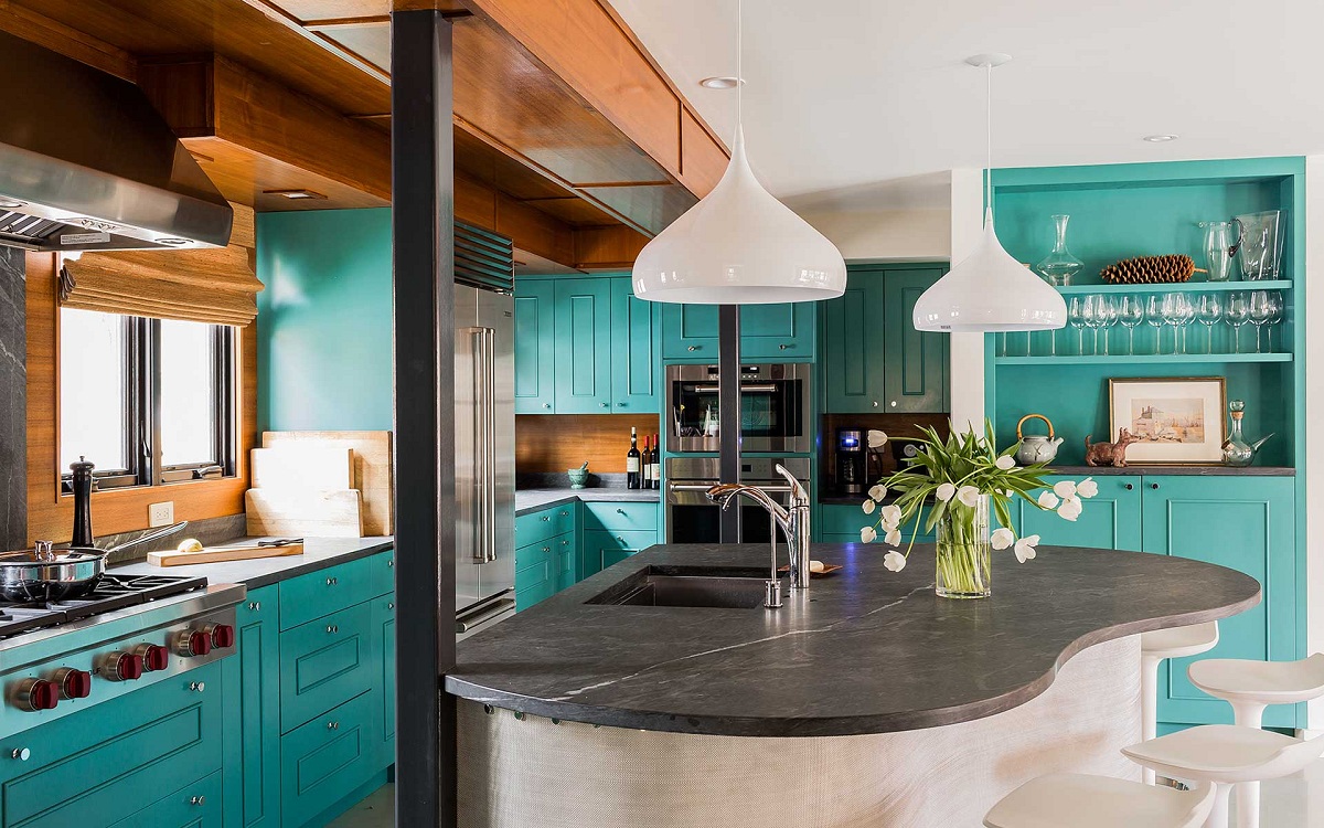 Кухня, оформленная в бирюзовых тонах, без сомнения, правильное решение.