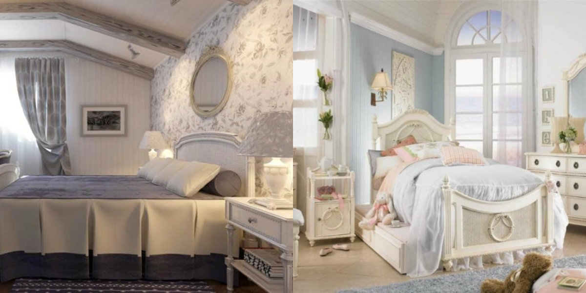 Для спальни. Центральный элемент спальни — кровать. Она должна быть большой, удобной, со множеством подушек и красивым покрывалом. Дополнить обстановку поможет небольшой комод, туалетный столик с зеркалом. Вся мебель в светлых тонах, аура томного прованского блаженства и умиротворения.