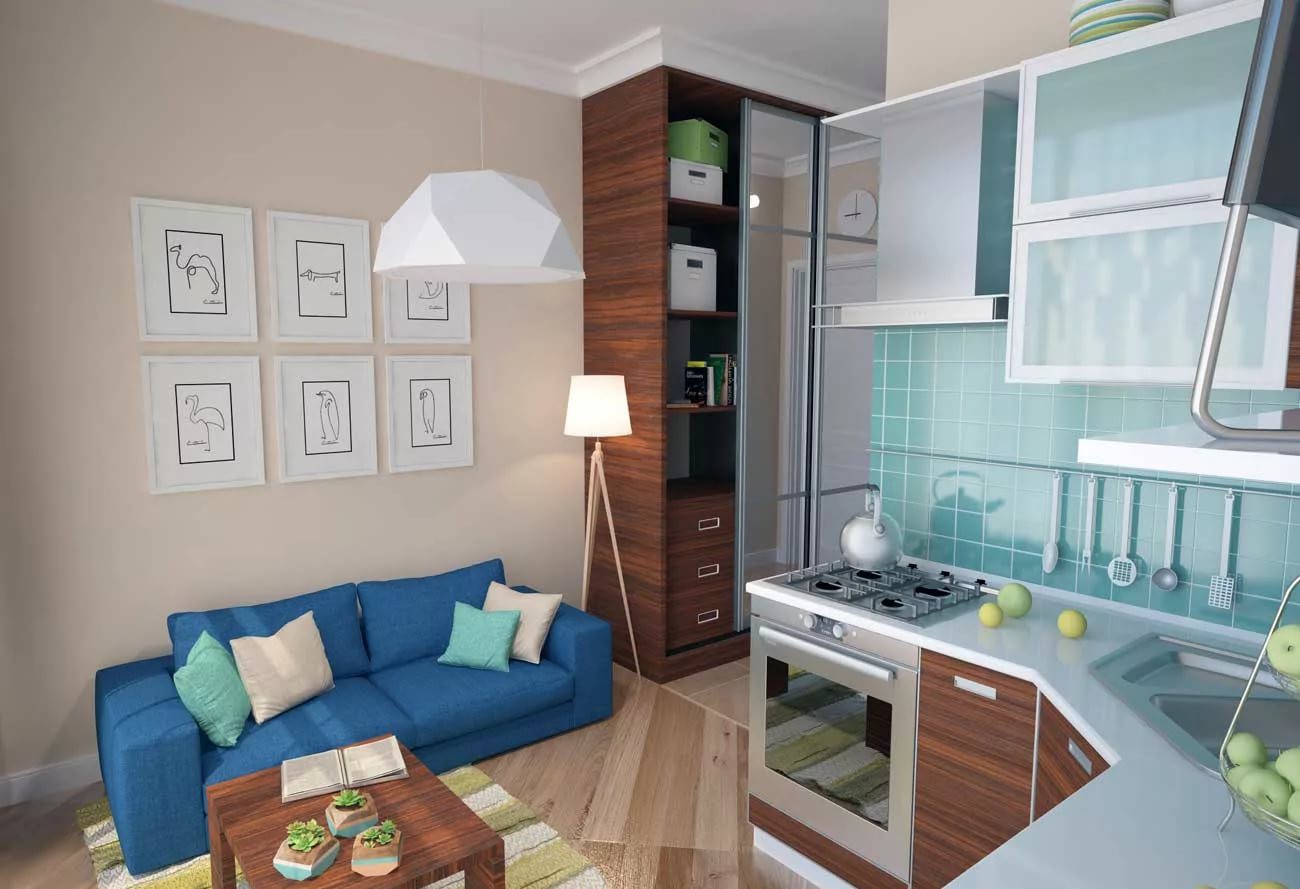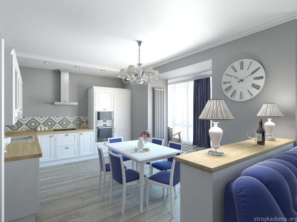 Главными участками в таких квартирах являются гостиная и кухня. Как правило, в создании дизайна интерьера люди отталкиваются именно от этих основных зон.