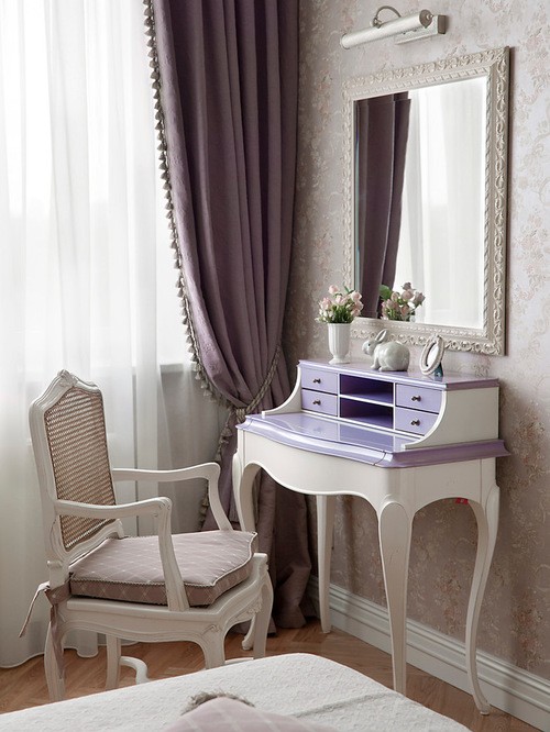 А если использовать сиреневые шторы из шёлка, то комната будет выглядеть роскошно и аристократично.