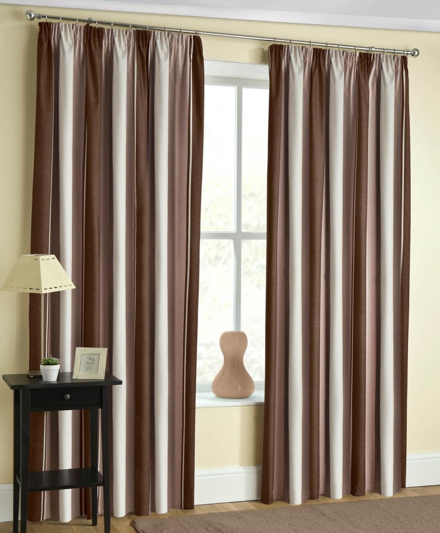 Бело-коричневые шторы являются удачным и наиболее популярным решением. Контраст цветов создает «изюминку» помещения.