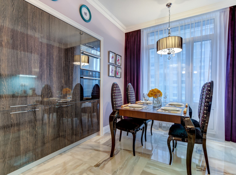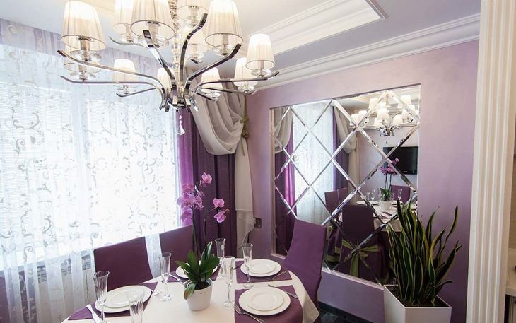 - В спальню или для кухни лучше выбирать нежные сиреневые оттенки, так как сочный фиолетовый цвет уменьшит комнату, сделает ее темной.
