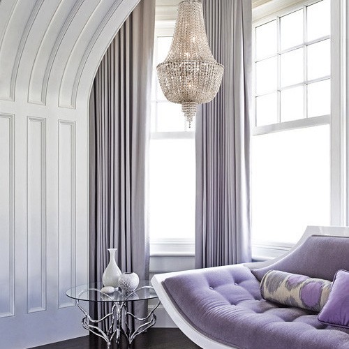Для визуального увеличения пространства можно использовать шторы светло-фиолетового оттенка с постепенным переходом в темный.