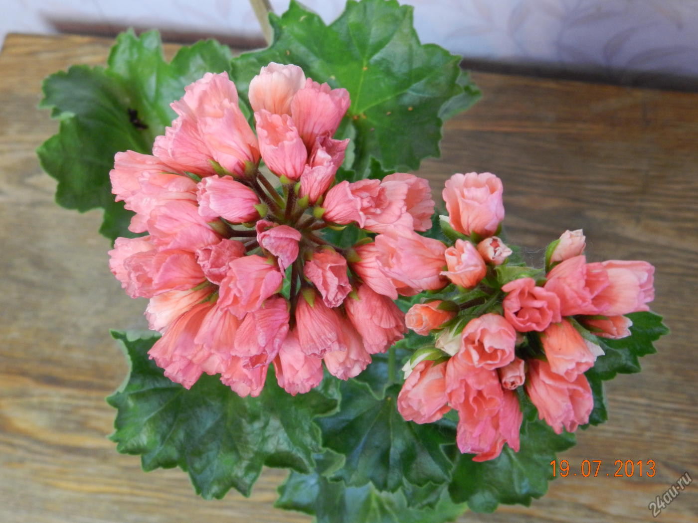Пеларгония плющелистная из серии Pygmy с лососевыми цветками