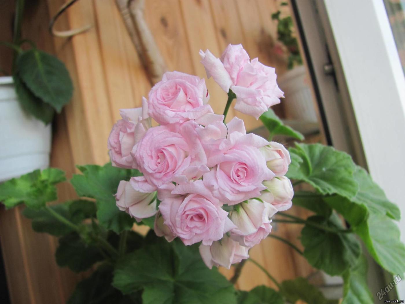 Эта Розовая пеларгония чаще всего встречается в озеленение. Прекрасное сочетание зональной и плющелистной пеларгонии дало возможность получить этот нежный гибрид. Очень стойкий, способный переносить резкие перепады температуры и похолодания. В жаркие дни необходимо усилить полив. Бутоны крупные, собранные в плотное соцветие, бледно-розового цвета. Форма бутона яйцевидная, очень напоминает розы. Долго вступает в фазу активного роста и цветения (не раньше второго года).