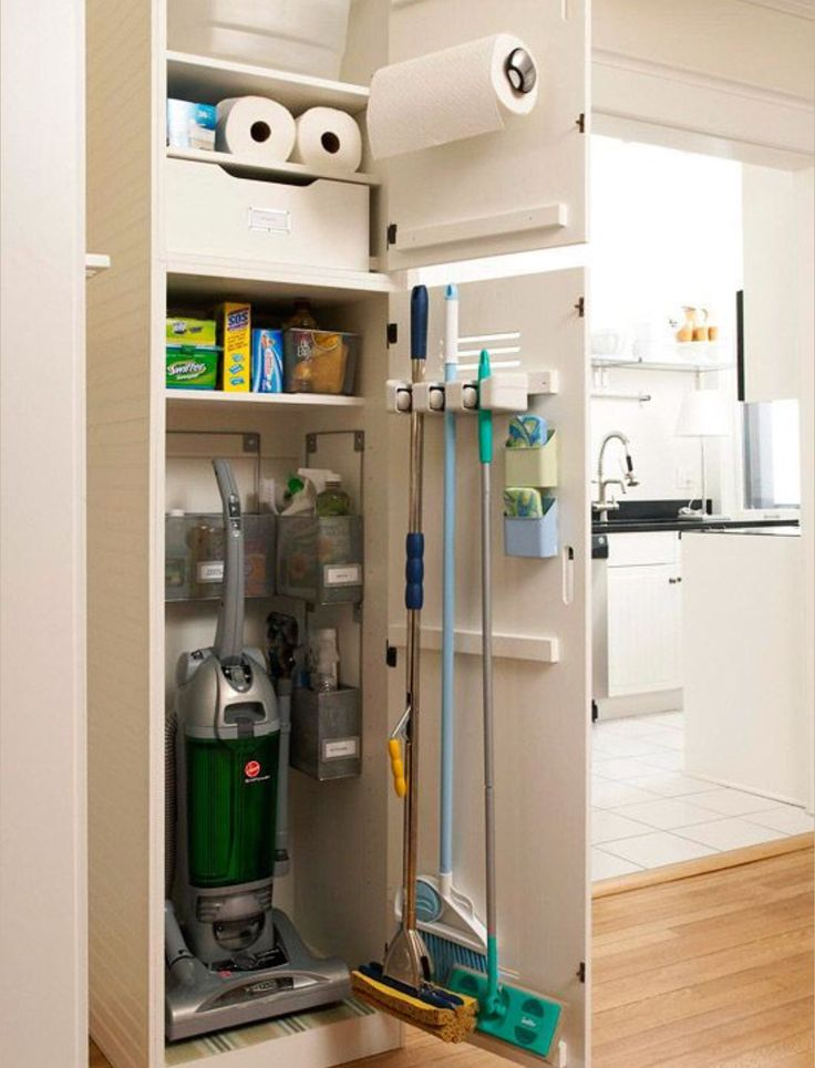 Если вы приобретете или соорудите самостоятельно оригинальный шкаф для хранения домашней утвари (так его и назовем – шкаф для уборки), то сможете хранить в нем и другие функциональные домашние предметы: