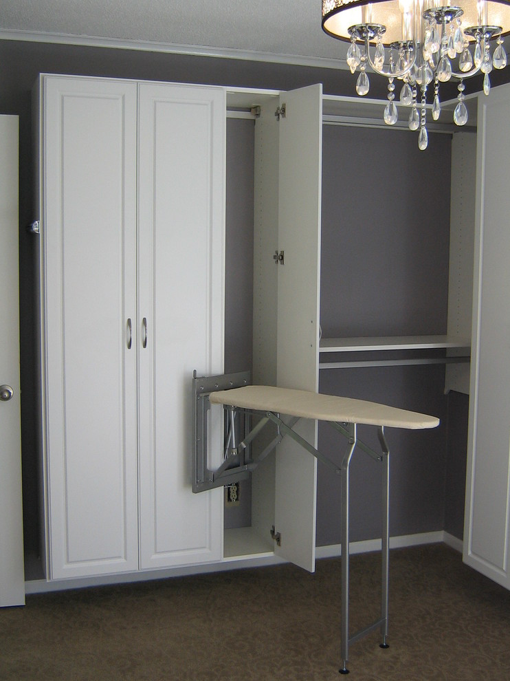 Но согласитесь, подобные манипуляции по складыванию гладильной доски занимают некоторое время, и не всегда можно его найти. Особенно актуально это в том случае, если у вас маленькие дети, и каждая минута на счету. В таком случае идеальным решением будет использование встраиваемых гладильных досок.