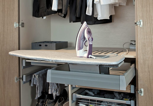 - позволяет экономить место. Разместив доску для глажки внутри шкафа, можно обеспечить максимум полезной площади и не испытывать ограничений при передвижении по квартире;