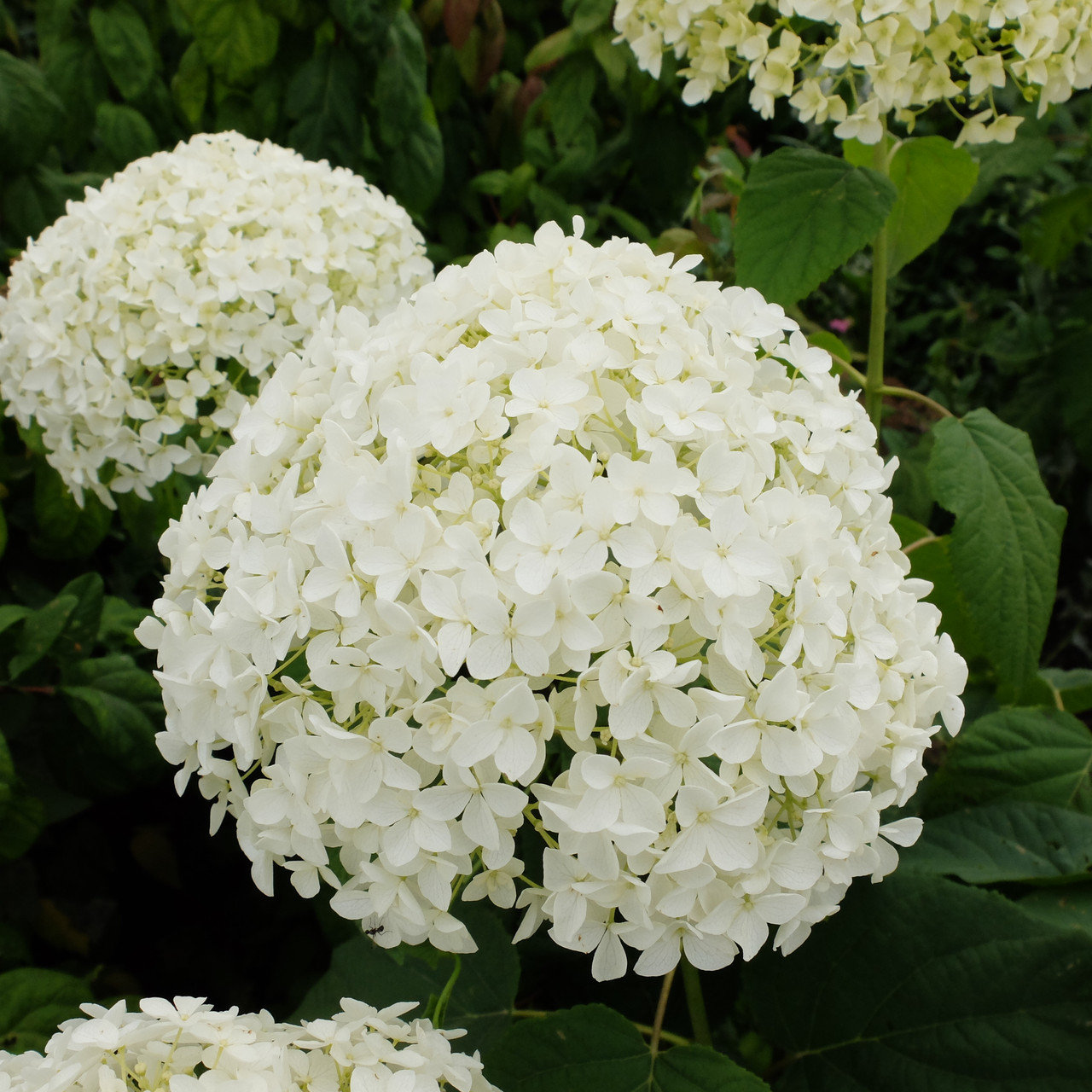 Гортензия древовидная или дикая представляет собой куст высотой до 2,5 метров с заостренными листьями и огромными плотными соцветиями разного окраса. Вид считается зимостойким и неприхотливым, благодаря чему широко используется для оформления садовых участков в средних широтах нашей страны. В укрытии не нуждается, предпочитает полутенистые и тенистые участки.