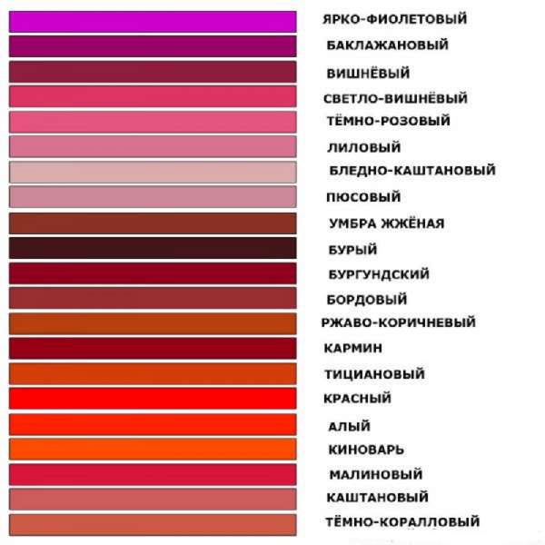 Бордовый – это цвет вина из провинции Франции Бордо. Он очень насыщенный, темно-красный с отсветом вишневого. Подобный тон повсеместно применяется в интерьерном дизайне и пошиве одежды, но создание его – тяжелый процесс. Добавление большого числа затемнителей может привести к получению грязноватой массы.