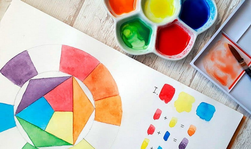 Тогда на помощь приходит техника смешения готовых красок. Для начала нужно ознакомиться с цветовым кругом, где представлены основные цвета, вторичные и дополнительные, и запомнить, какие из них при смешивании дают коричневый оттенок. Нюансы, которые надо учитывать при использовании гуаши: