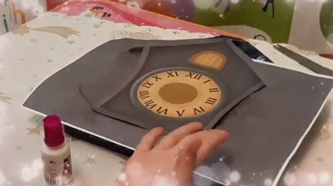 Сразу можно вырезать окошко для кукушки и открыть его.