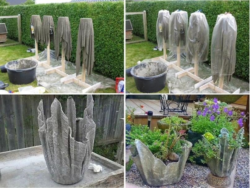Как сделать кашпо из цемента и ткани