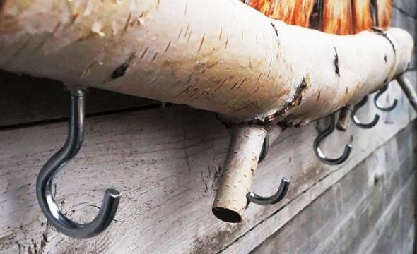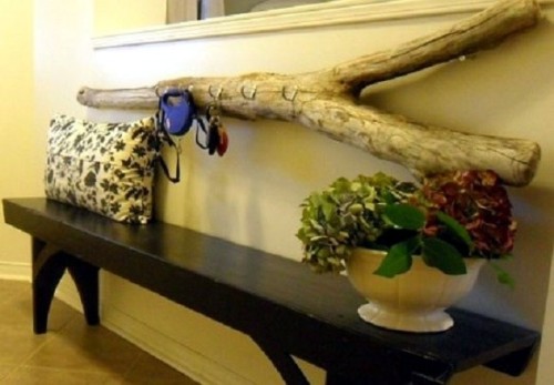 Ветку нужно промыть, просушить и убрать с нее лишние элементы. Кору можно убрать или оставить. Дерево следует обработать морилкой, а при желании сверху еще покрыть акриловой краской. Крючками могут послужить сучки, а также дополнительно вкрученные вешала.