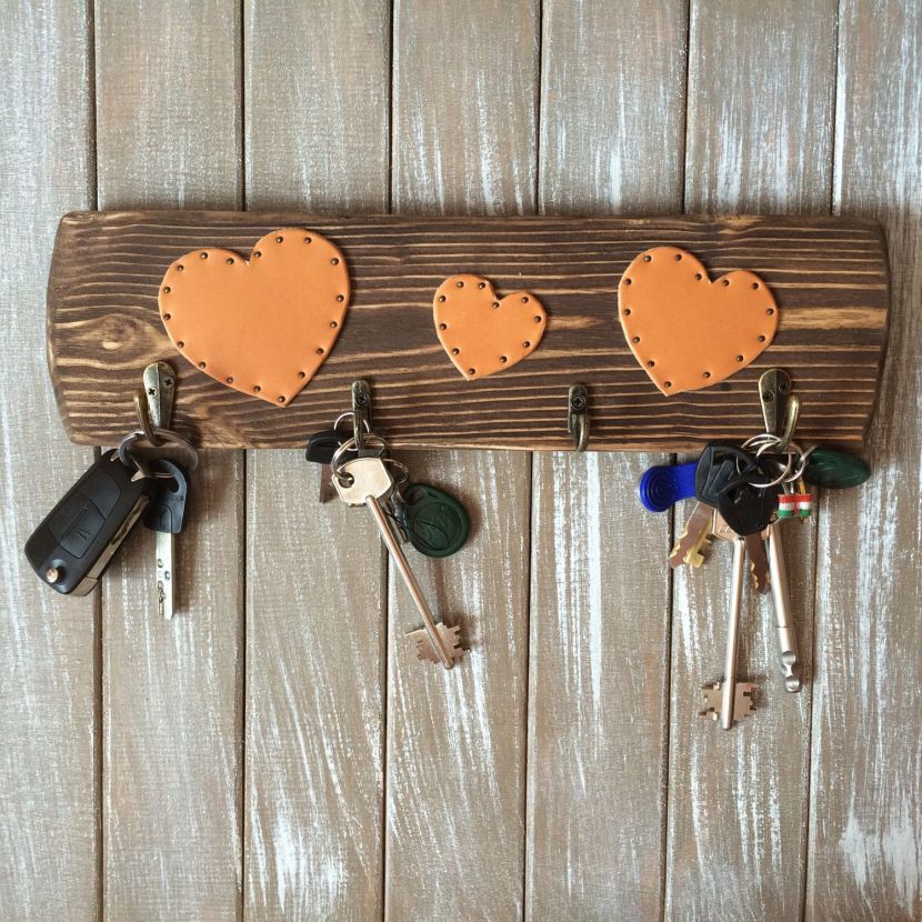 - Открытые. Такие обычно изготавливают своими руками, поскольку они проще в выполнении. Представляют собой любые крючки, на которые можно повесить ключи, вбитые во что угодно. Доска с гвоздями? Открытая. Ветка с сучками? Открытая. Кожаный отрез с кармашками? Открытая.