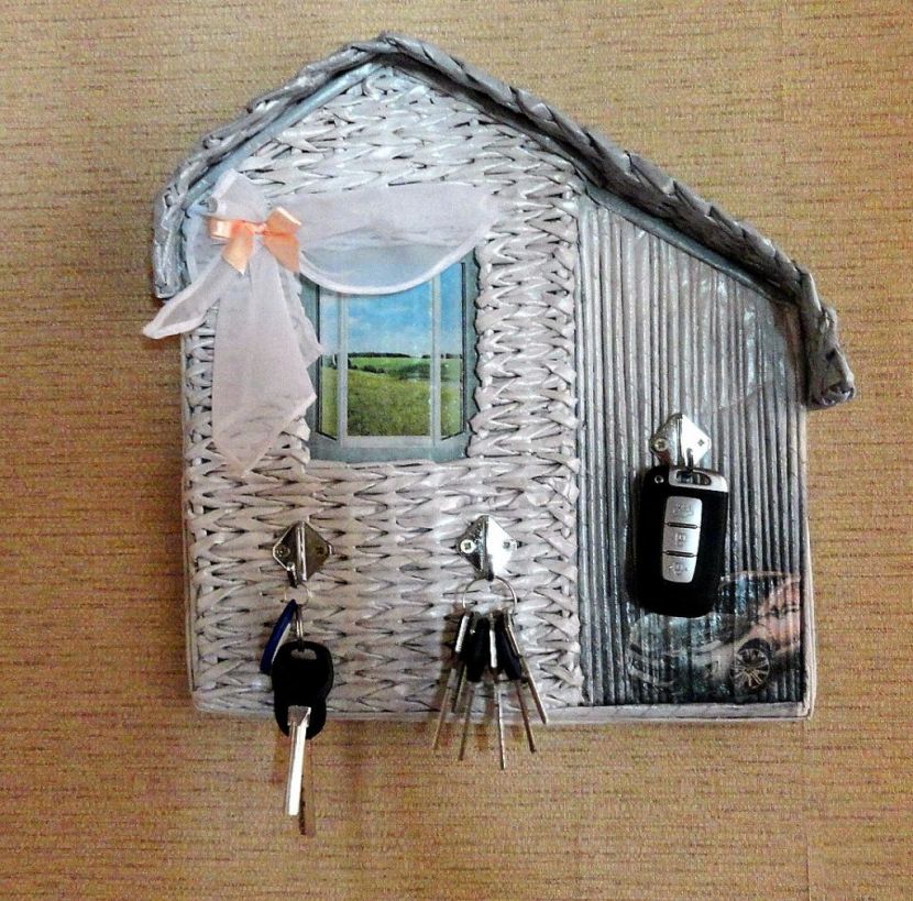 Кроме ключниц из твердых материалов (металл, пластик, дерево, фанера), можно самостоятельно сделать ключницу из картона, кожи и даже соломы. Существуют даже мастер-классы изготовления ключниц из природных материалов. Можно встретить интересные модели ключниц, закрывающиеся на индивидуальный ключ – это весьма удобно, главное, чтобы потом не пришлось искать основной ключ.
