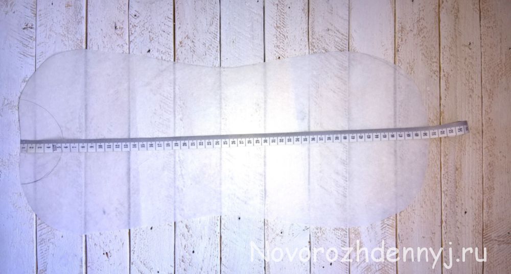 Для изготовления пеленки-кокона понадобится только одна деталь выкройки, по форме напоминающая восьмерку.