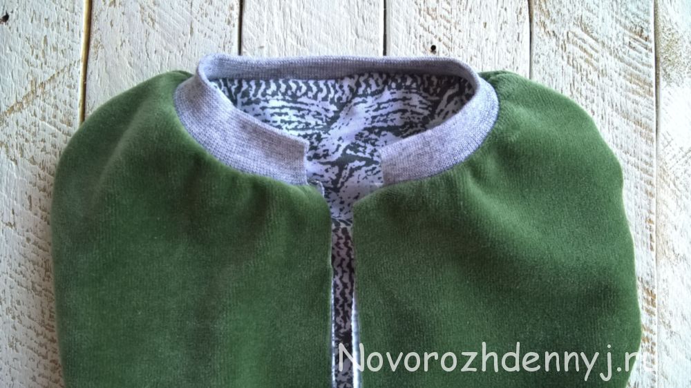 - Трикотажным швом стачайте эти детали по всему периметру, кроме горловины, и то же самое проделайте и с деталями из подкладочной ткани.