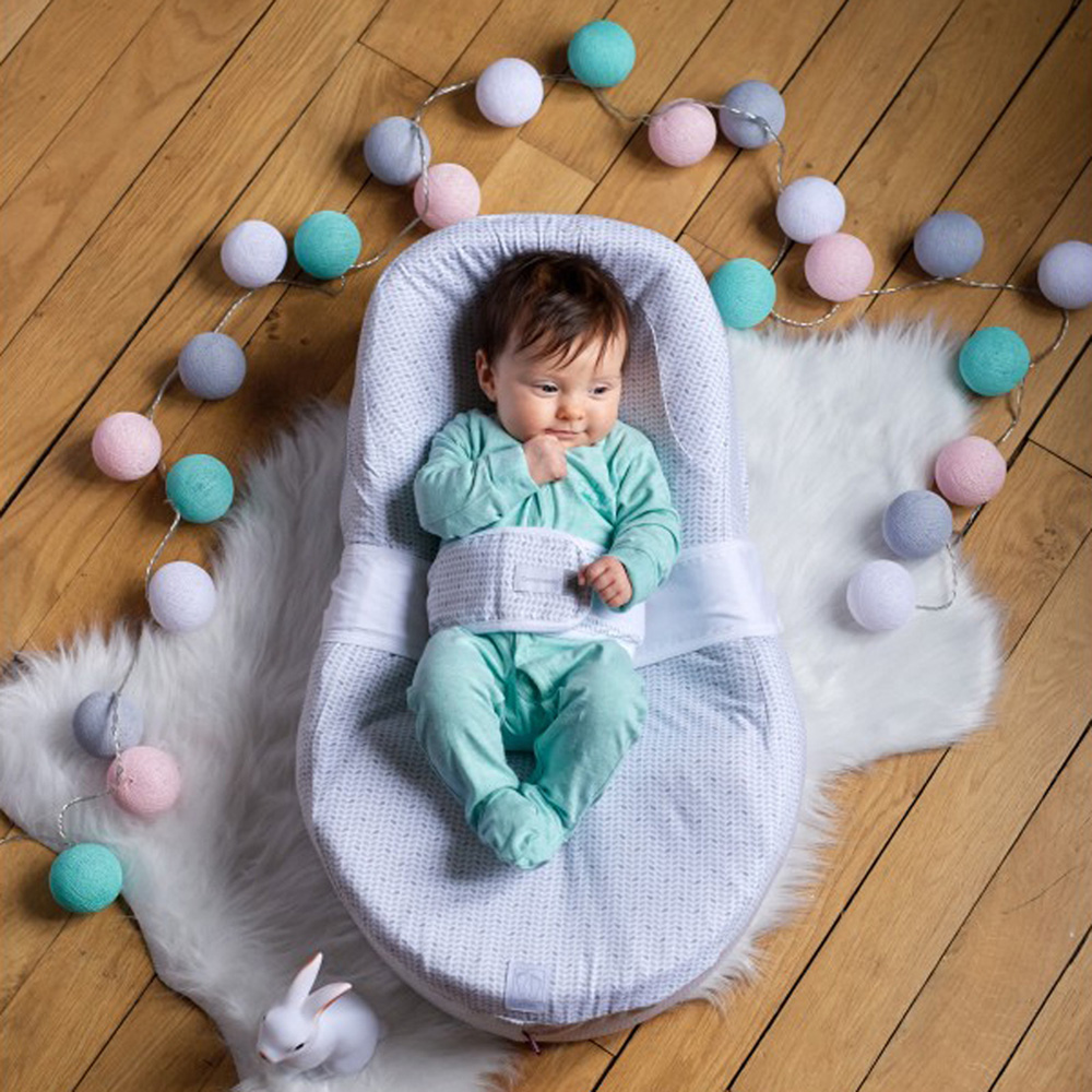 Шведский матрасик-кокон Babynest напоминает мягкую кроватку с округлыми бортиками. Они поддерживают малыша в комфортном положении.
