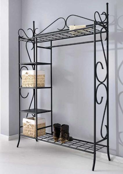 Существуют напольные и настенные кованые вешалки для прихожей. Напольные подойдут, если вы планируете размещать вещи на вешалках и если ваш гардероб богат на длинные вещи: пальто, платья, шубы.