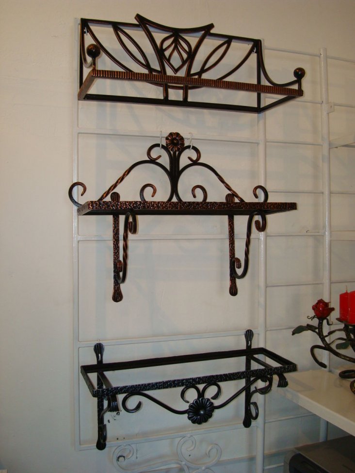Кованые полки из-за качественного металла являются лёгкими. При заказе полки следует выбирать нужный цвет, чтобы он гармонировал с цветовой гаммой комнаты, что является важным в дизайне прихожей.