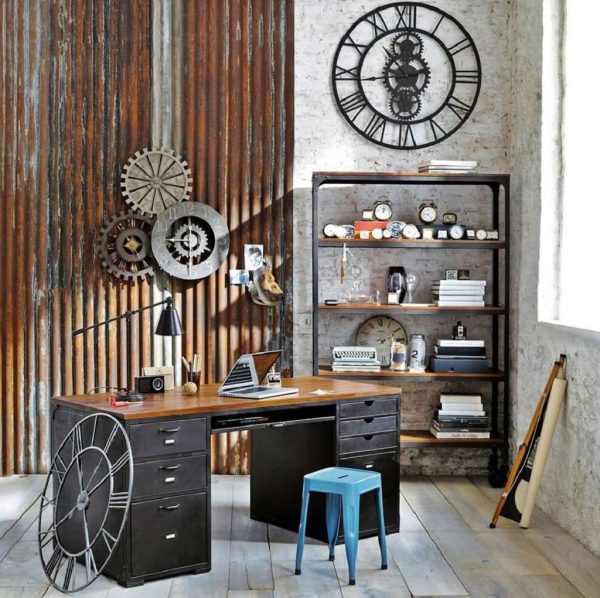 Еще один старинный, но техничный стиль — стимпанк. В индустриальном направлении конца XIX века прекрасно уживаются кованые элементы мебели и различные технические детали. А разбавляется это металлическое царство образами диковинных животных.