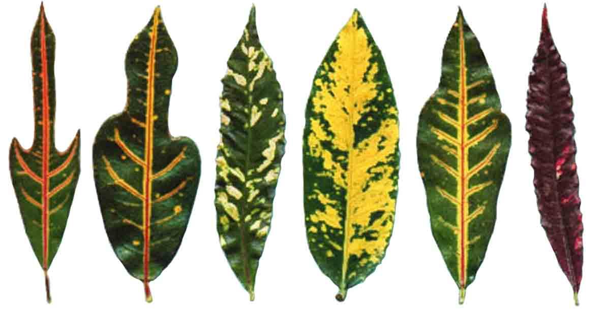 В природе существует несколько десятков видов кротона, но только кротон пестрый используется для комнатного выращивания. На его основе выведено несколько гибридных сортов, их фото встречаются в каталогах многих магазинов. Наиболее интересными разновидностями являются следующие: