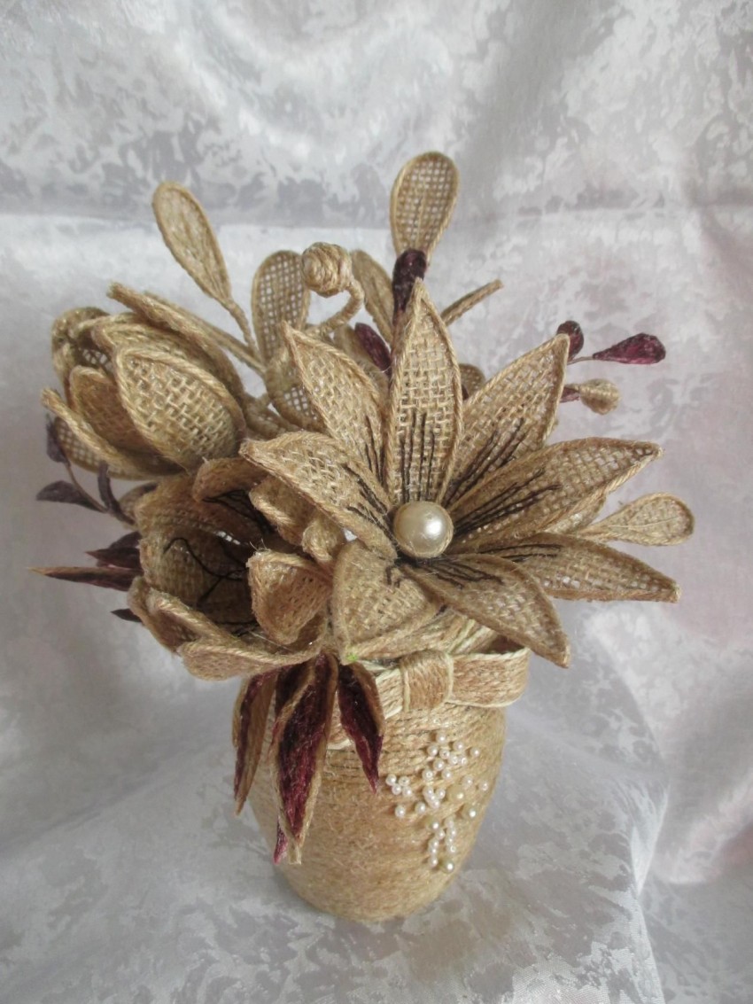 Принято считать, что стиль заключается в деталях. Это мнение подтверждает мешковина. Применив ее в мелких деталях можно довести интерьер до идеала. Обернув горшки с комнатными цветами в лоскут мешковины, вы получите оригинальную и самобытную вещь. А обклеив шкатулки с бижутерией, обретете мини — сундучки в прованском стиле.