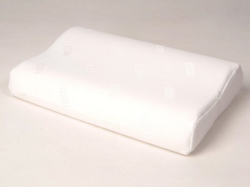 - Ортопедическая. В идеале она должна производиться индивидуально под параметры тела, в частности высоту самого полотна и шейного валика. Они жесткие, не проминаются, надежно фиксируют голову.
