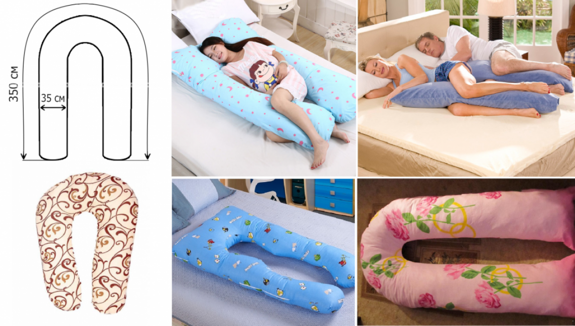 Подушка-подкова тоже относится к ортопедическому типу. Она идеально подойдёт для беременных женщин. Изделие поддерживает тело, разгружает мышцы и предотвращает их напряжение. Предмет положительно влияет на мышцы шеи и спины во сне. Однако U- образный аксессуар предусматривает наличие большой кровати, так как её размеры могут достигать габаритов примерно 340*35 см. Есть и небольшие подушки-подковы, которые используются для комфортного сна в дороге. Они поддерживают шейные позвонки. Такая подкова надевается на плечи, защищая шею и голову.