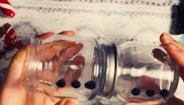 Дождитесь, пока клей высохнет, закрутите крышку и переверните емкость. Необычный сувенир для создания комнатной вьюги готов. Добавьте блесток и конфетти, украсьте баночку лентами и бантами, и смело дарите друзьям и родным!