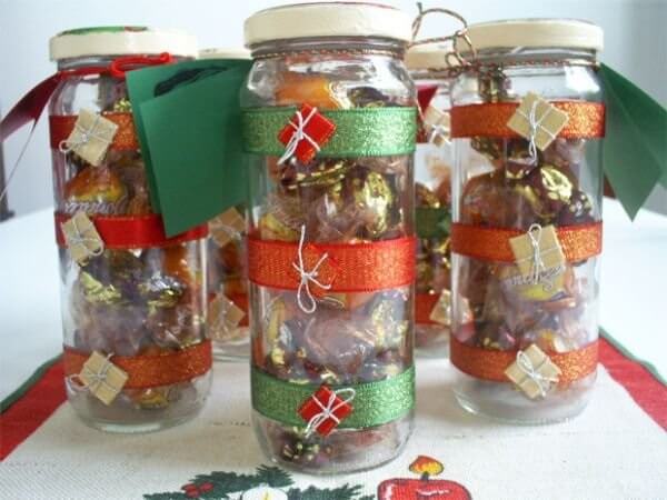 Начнем с идей оформления. Как всегда, все гениальное — просто. Мне понравилась идея стеклянных собранных снеговичков, подобные показаны на фото. За основу сойдут стеклянные баночки для детского питания (обычно их много в каждой семье). А если нет, то бегом в магазин за яблочным или фруктовым пюре — и вкусно и полезно!