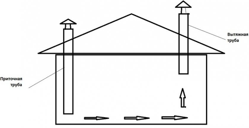 1. Естественная. Такая конструкция работает за счет движения воздуха из-за разности температур внутри и снаружи помещения.