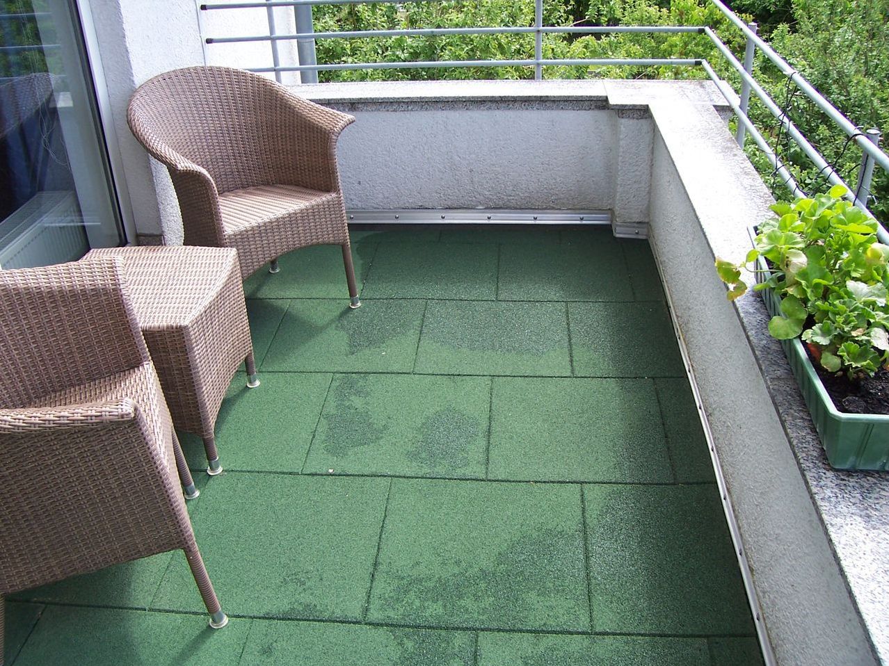 Открытые балконы в регионах с холодными зимами и повышенной влажностью лучше застилать плиткой (ПВХ, клинкерная, керамогранит), декингом, полукоммерческим вспененным линолеумом, искусственным полиамидным ковролином. Или же делать мокрую стяжку под покраску и наливной пол, если позволяет состояние основной плиты.