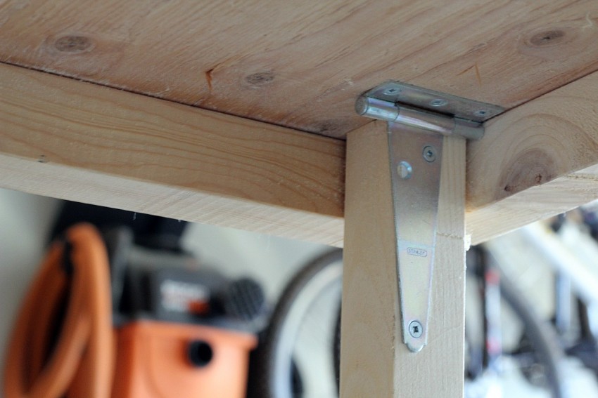 Для изготовления понадобится столешница, два толстых бруска и три петли.