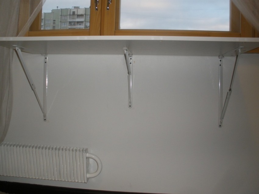 Необходимо только изготовить столешницу из досок, ДСП, МДФ или другого материала и прикрутить к ней на шурупах кронштейн.