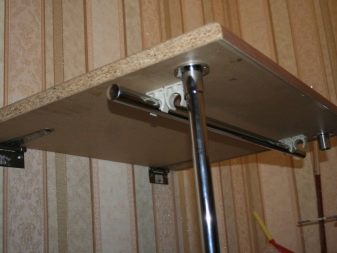 - Фурнитура для функционирования системы. Как правило, для этого используются завесы, несколько штук для закрепления столешницы и одна-две для фиксации ножки.