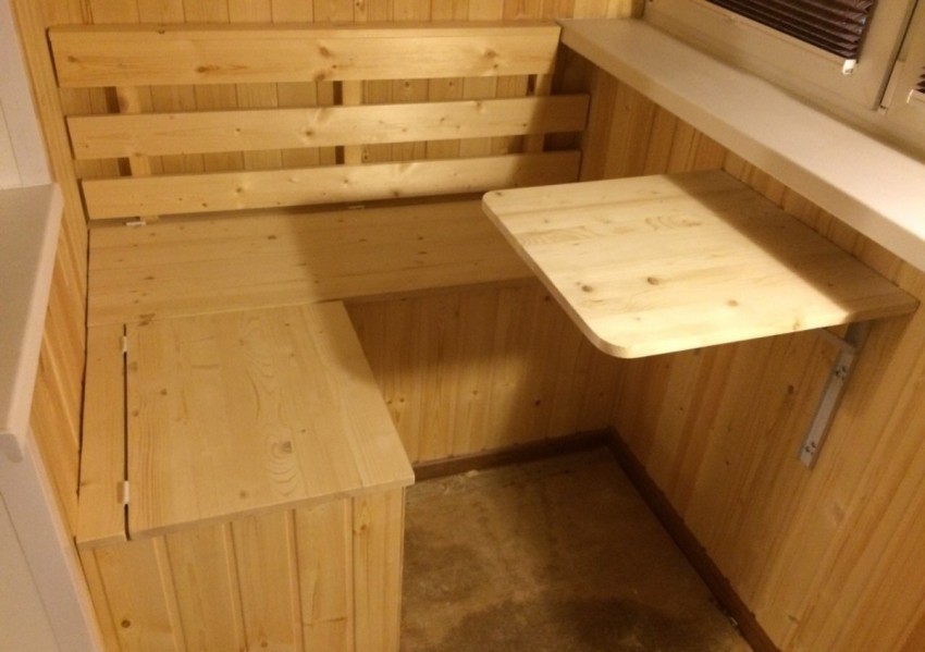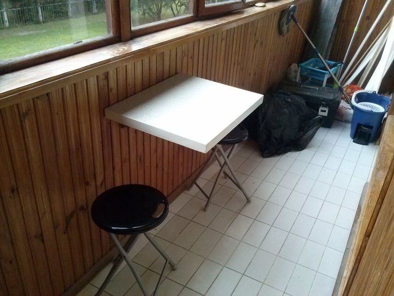 - Есть возможность установки такого стола в любой части балкона, так как он не нуждается в особых условиях для монтажа своими руками.