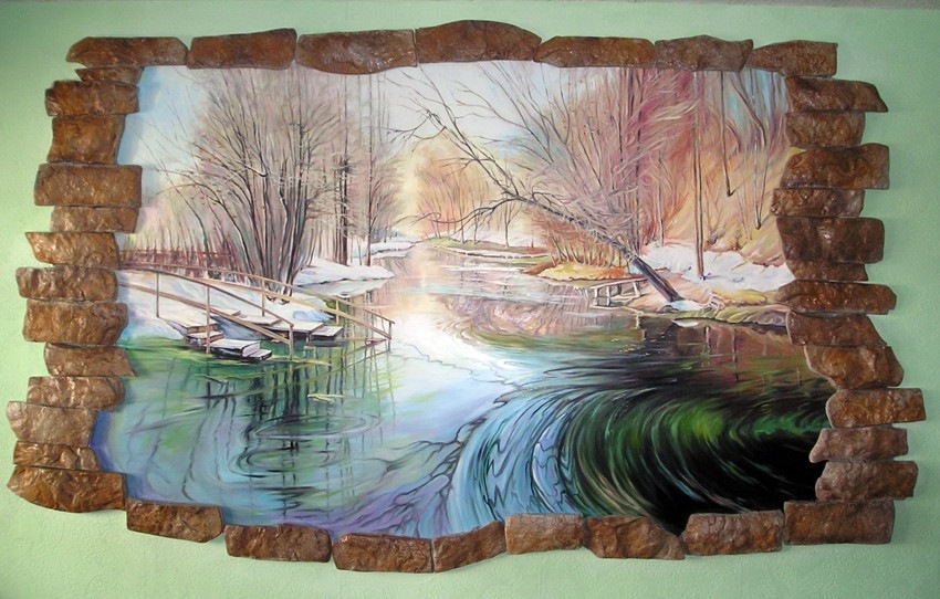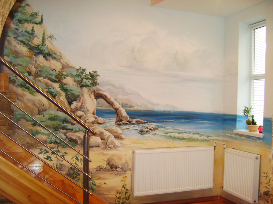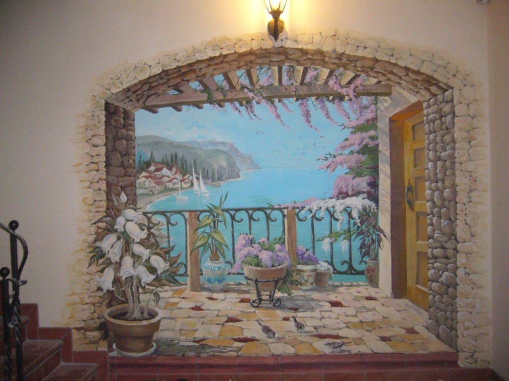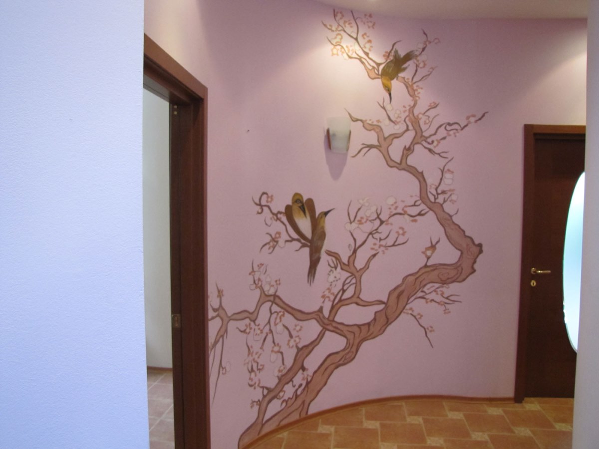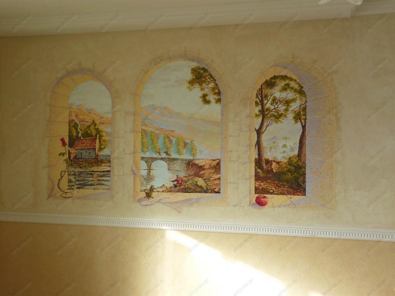 Уверенные в своих способностях могут использовать технику рисунка по влажной штукатурке и создать фреску. Набросок делается по стене карандашом. Затем создается изображение темперными красками. Рисовать надо быстро, пока не высохла штукатурка. Она придаст линиям природную плавность переходов цветов.