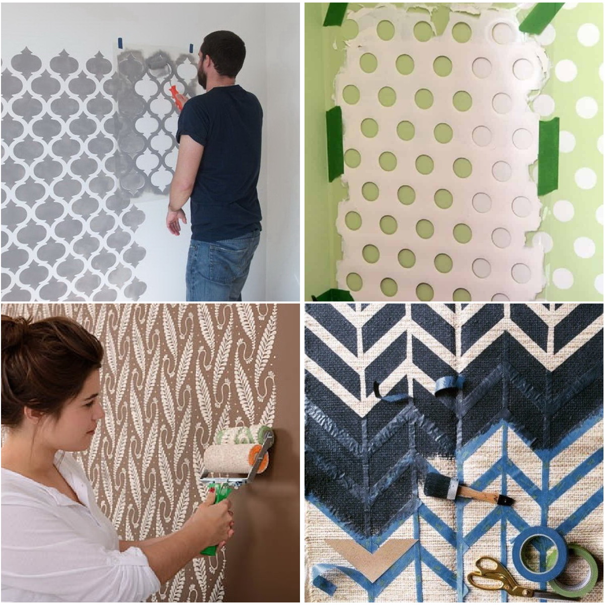 На стену узор можно наносить при помощи трафарета. Подобная техника предоставляет широкий простор для фантазии, дает возможность играть на контрасте цветов. Этот тип украшения стен подходит для мелкого формата и монохромного рисунка. Трафарет можно купить либо самостоятельно подготовить контур на принтере, который потом переводится на плотный картон.