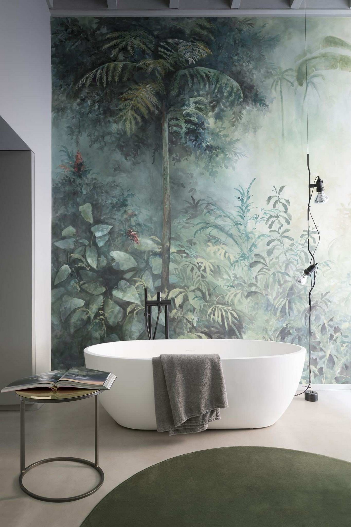 Учитывая высокую влажность, в этой комнате роспись делают акриловыми водостойкими красками. Для росписи подходит пейзаж морского дна, фонтаны, жемчужины, римские термы.