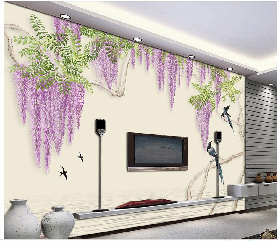 Рисунки в этой комнате должны располагать к спокойствию и уюту, а потому для композиции выбирают пастельные нежные тона. Изображение может напоминать облака на небе, райских птиц, веточки сакуры, изящных бабочек. Главное придерживаться теплой и мягкой гаммы цветов.