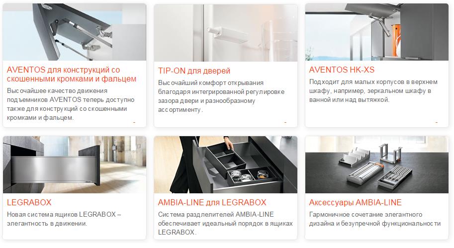 При выборе любого вида кухонной фурнитуры надо основываться на эксплуатационных характеристиках продукции. Наиболее известна и популярна у профессионалов фурнитура для кухни Blum, которая отличается высоким качеством, разнообразием конструкций и долговечностью.