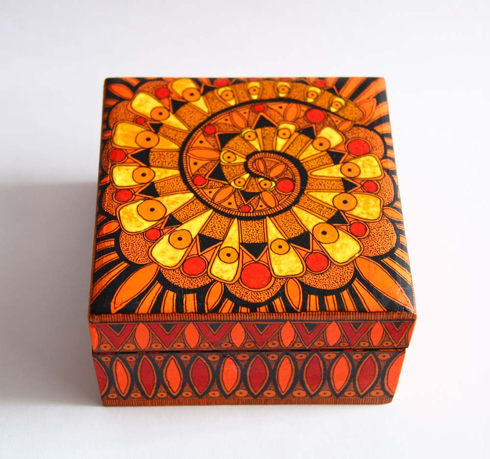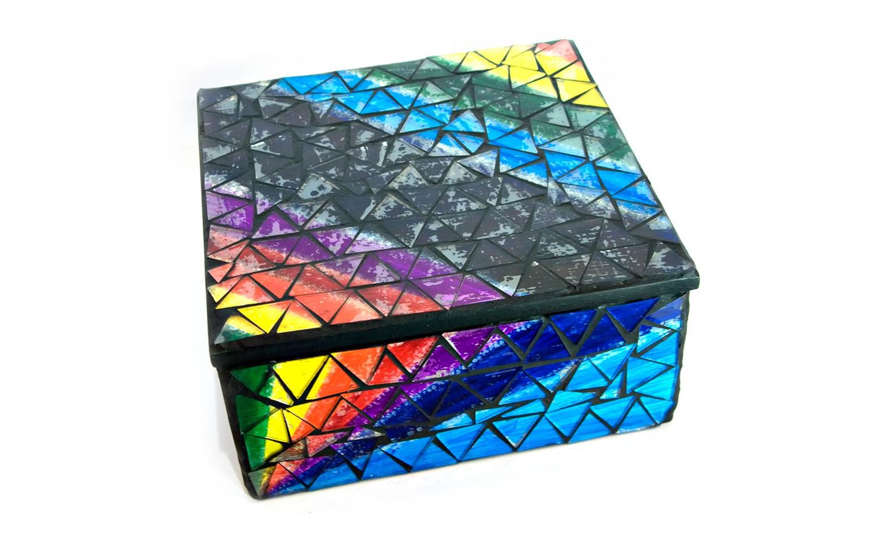Внешние стороны короба оклеиваются либо декоративной бумагой, либо тканью. Крышку шкатулки можно декорировать рисунком, фото, раскрасить акриловыми красками или нанести аппликацию. Не забудьте изделие покрыть сверху лаком. Также для украшения применяются бусины, пайетки, блестки, пуговицы и т. д. – фантазируйте и используйте, что душа желает.